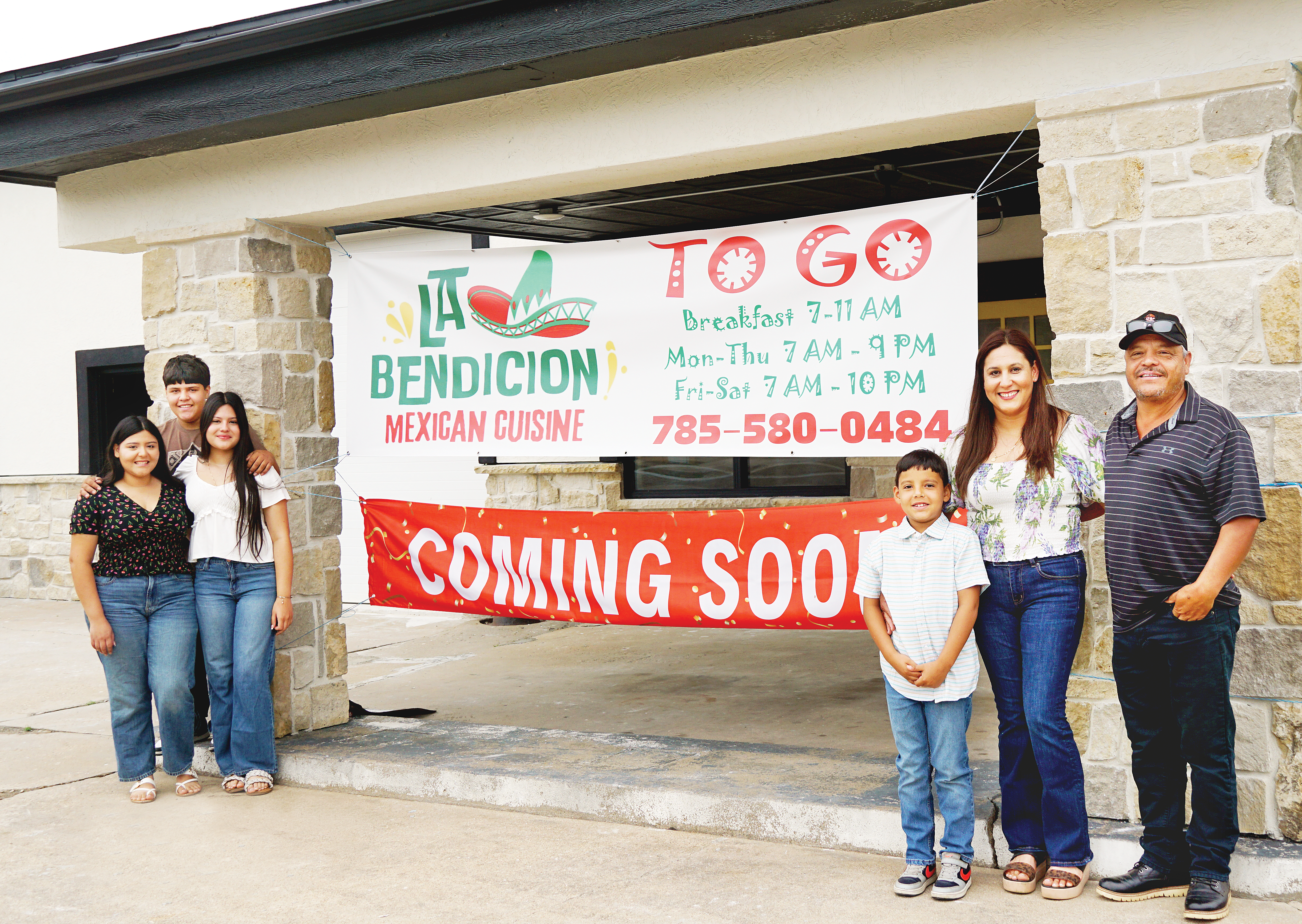 Following lunch and dinner service on opening day, La Bendición will maintain regular hours, 7 a.m. until 9 p.m. Monday through Thursday, and 7 a.m. until 10 p.m. Friday and Saturday. Breakfast is available until 11 a.m. each day. Orders can be taken at the window, or by calling 785-580-0484.