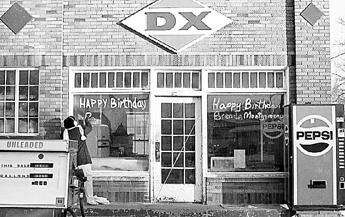 Photo from The Vindicator archives – The windows at Billings DX Service Station proclaimed the day’s birthdays for the Valley Falls community. Jim and Dorothy Billings started the unique feature in 1984 and never missed a day.