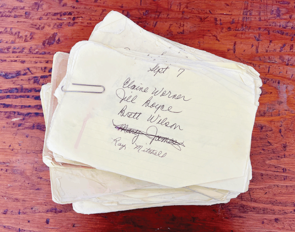 The original written birthday slips. Each date of the year has its own page, written in Dorothy or Dianne’s hand.